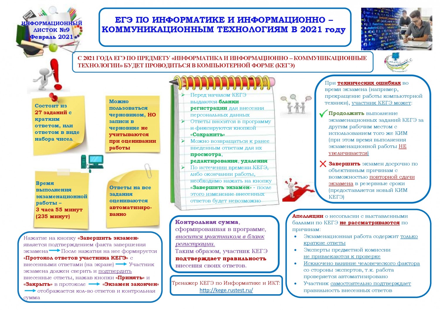 Условия проведения ЕГЭ по информатике и информационно-коммуникационным технологиям в 2021 году